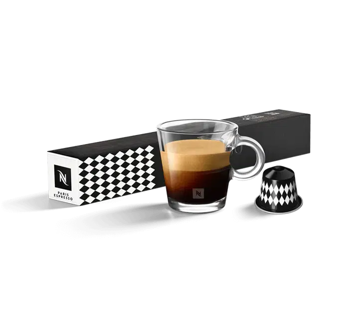 Dejate llevar por el sabor elegante y tostado de Nespresso Paris Espresso, la esencia del café parisino en cada sorbo.