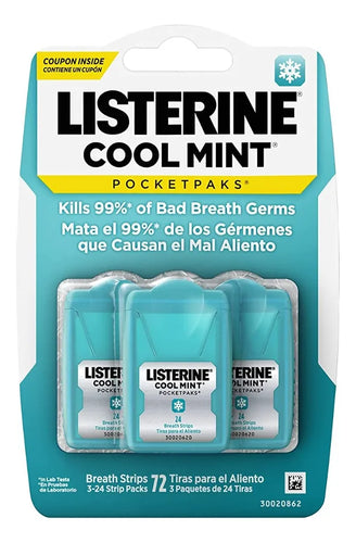 Listerine Laminas To Go Travel Size Cool Mint 3 Pack X 24u
